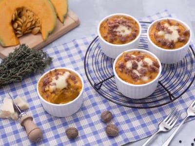 Рецептата за огретен с катрофи, тиква и колбаси е готова.