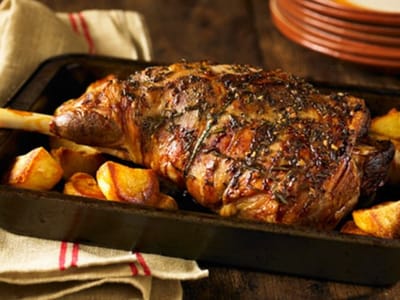 Печено агнешко бутче с картофи